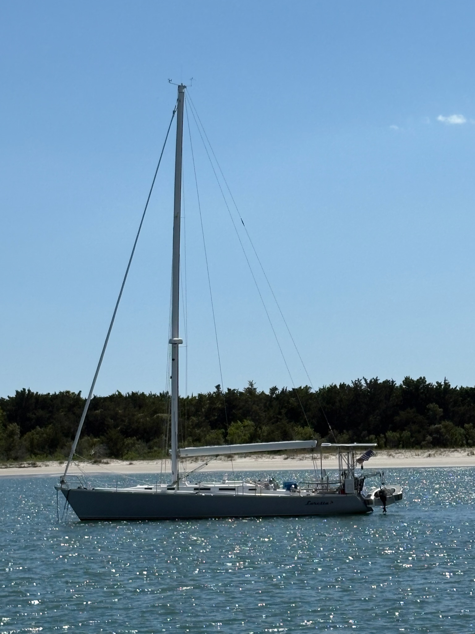 By now we were all hungry so we headed to Moonrakers Coastal Cuisine in Beaufort (BOWfort). We were seated on the third floor in the open air overlooking the water with the Rachel Carson Reserve in the distance. The Reserve is inhabited by wild horses that Ross said can often be seen from the restaurant. Unfortunately none were seen while we were there.