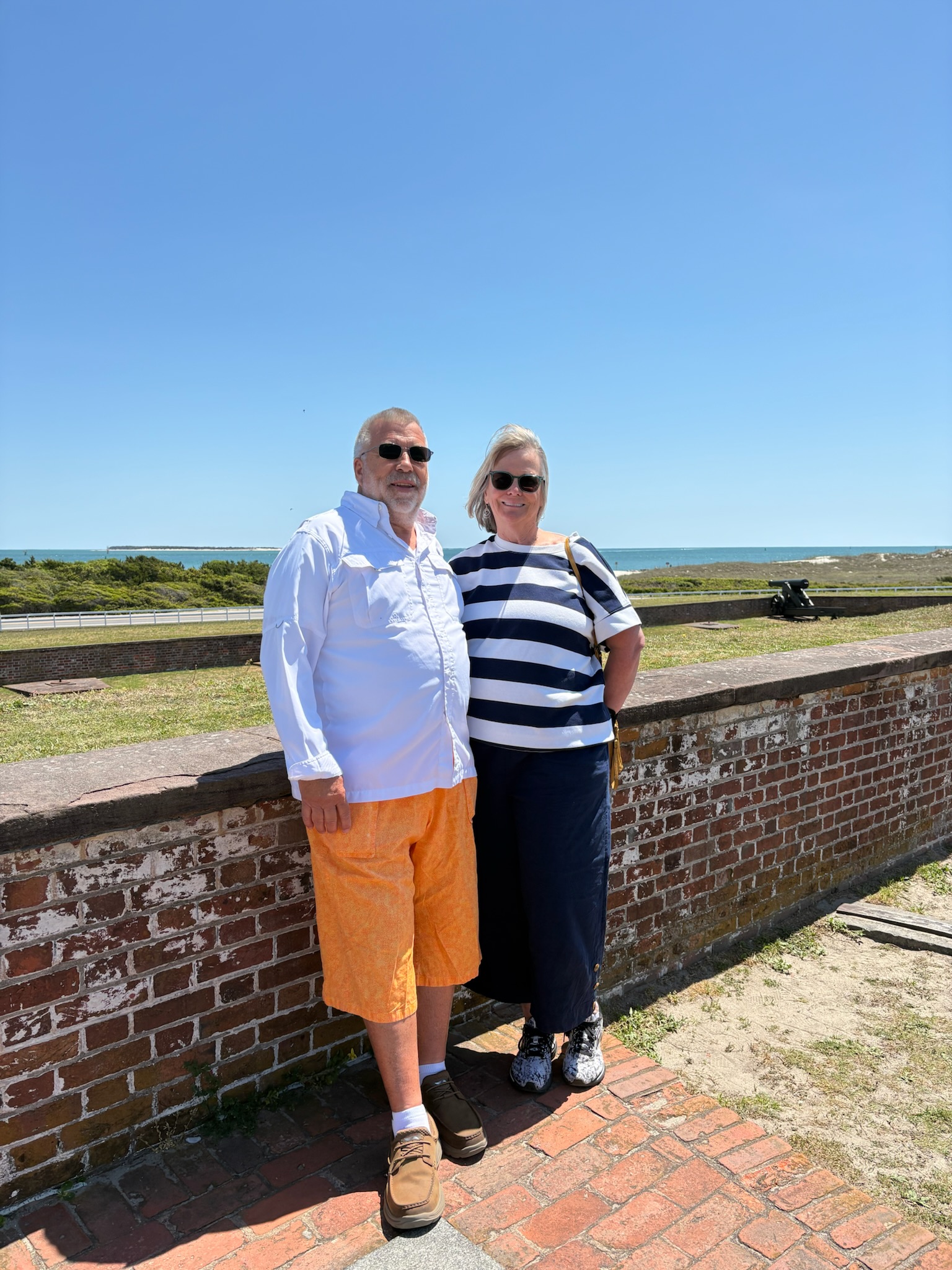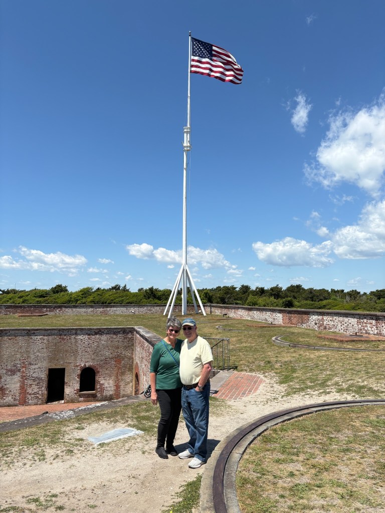 Joanie and Ross picked us up at ChILL around 10 AM and we headed to Fort Macon State Park, about an hour and a half away. It was a pleasant drive especially when we reached the barrier island where we could see water on the left and right sides of the road as we continued to Fort Macon State Park in Atlantic Beach. Ross brought a kite along in the trunk but decided the wind conditions were not favorable. We hope to visit during a kite festival and see him in action with his kites.